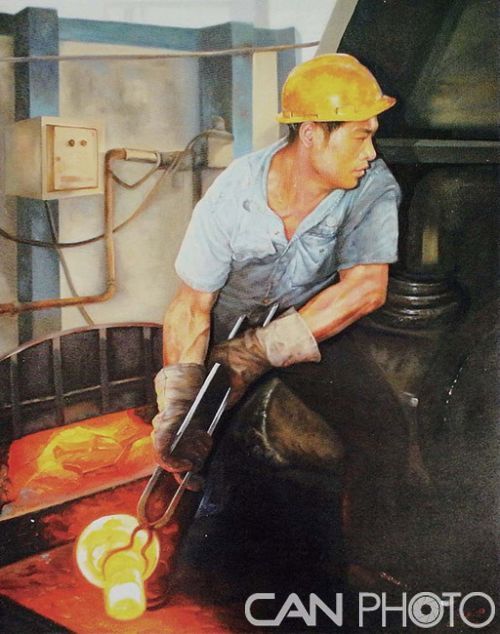 油画 《烈焰雄心》是一幅写实风格的作品,对物象色彩、造型、质感的刻画准确,画面结实,结构松紧控制较好。但整体画面布局不够完整,照片痕迹过于严重,也因此造成了画面虚实对比关系处理得不够明确,需加强。在此谈一下对照片创作应注意的问题,对照片的创作比对景写生创作要求艺术审美经验更高,对画面艺术形态、色彩构成、质地表现的处理手法更加苛刻,如果你不是有很强艺术功底和大量写生创作经验,尽管照片解决了造型问题,但画面的艺术性会成为创作的最大问题。